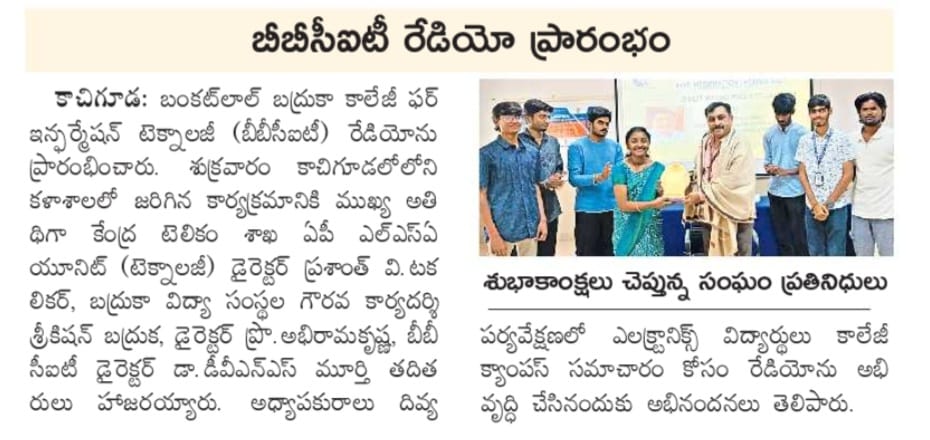 Bankatlal Badruka College for Information Technology (BBCIT), named in honour of the founder, was established in 1991 to impart instruction of excellence in IT. The college has been able to carve a niche for itself in the academic world in a short period due to hard work and the dedication of staff.