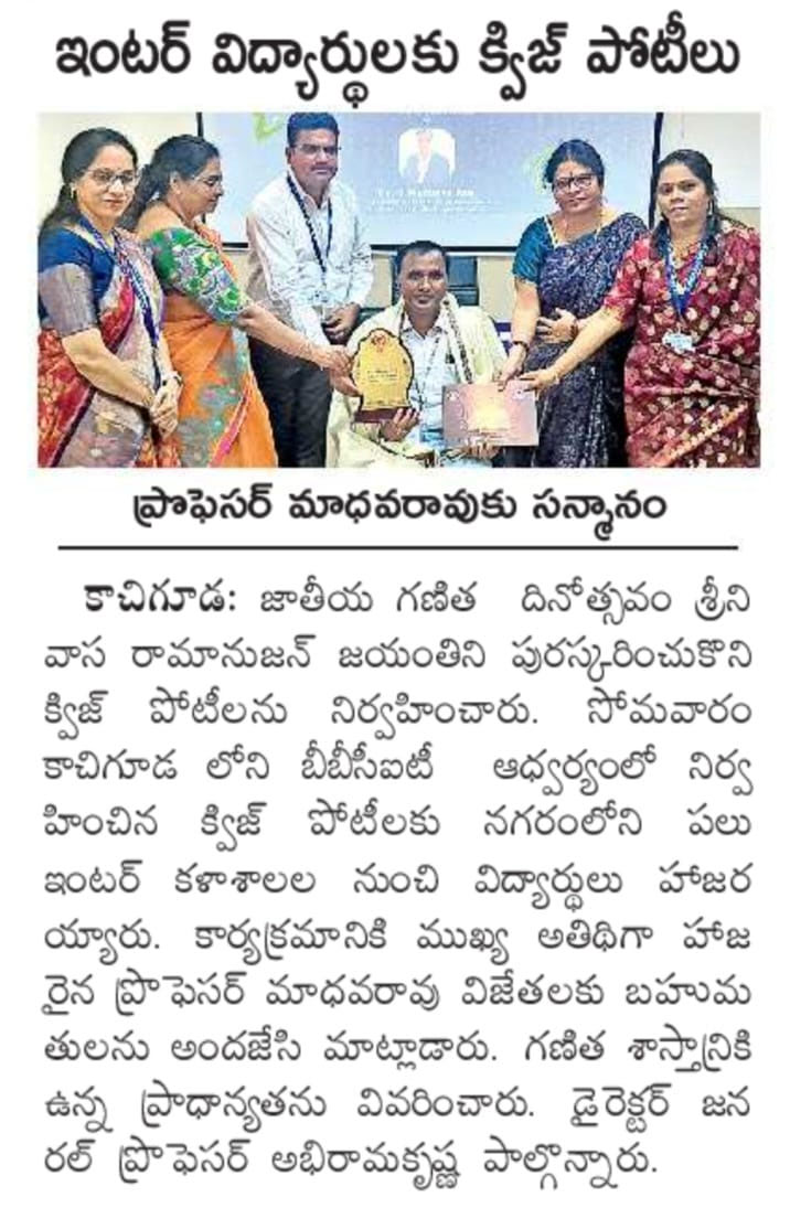 Dr. Murthy completed Post-Graduation in Statistics from Osmania University, and stood University first with Distinction. He did Doctoral degree in Statistics, from OU, Hyd.